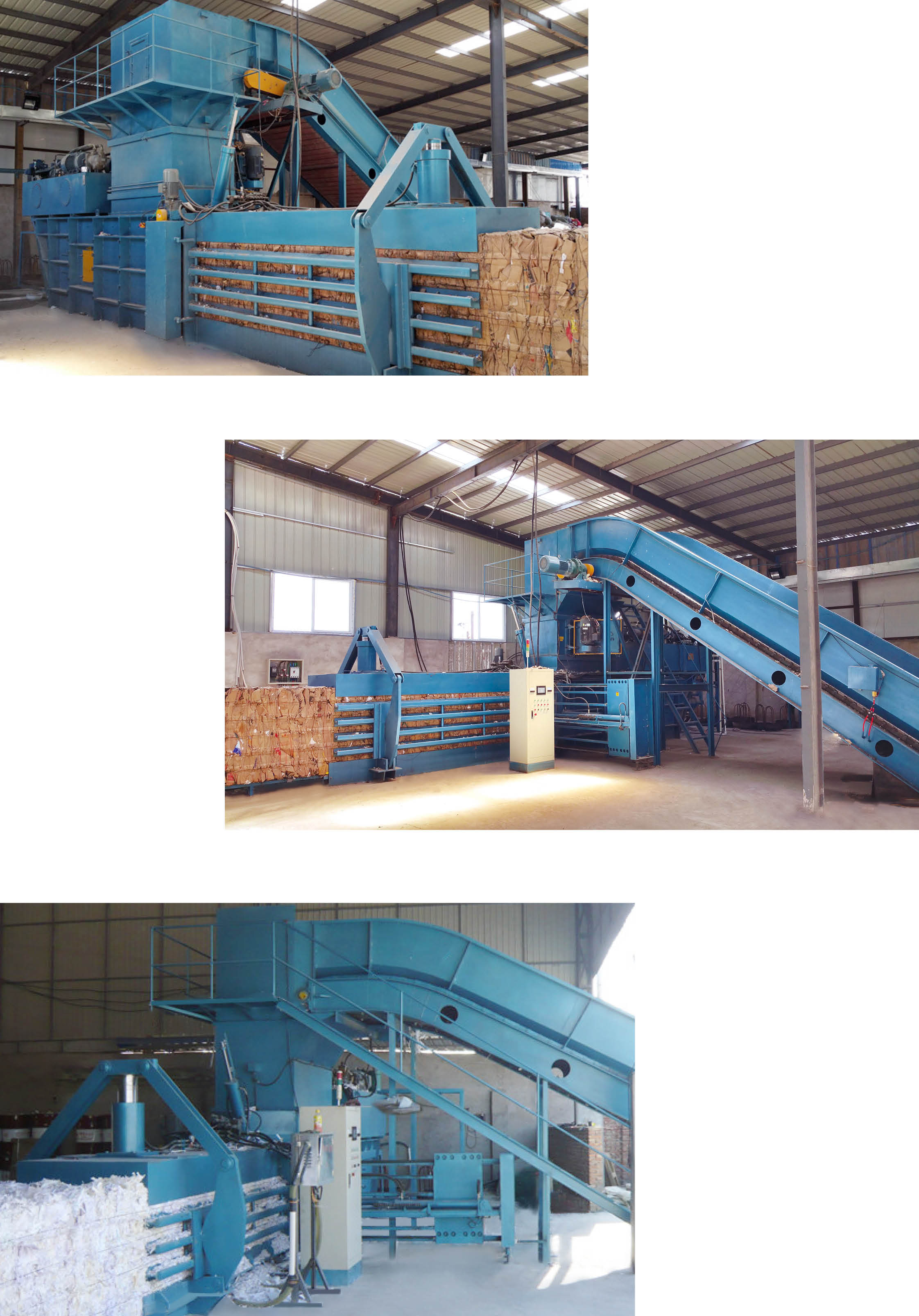本機用于廢紙回收公司,大型紙箱廠生產線下角料配套打包,進口廢紙分選后打包,廢塑料、秸桿、牧草等非金屬打包。